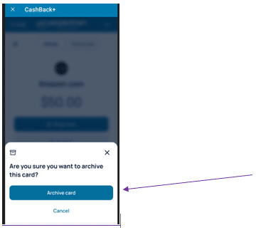 Note: If the card has already been used, it will still show here. Best practice is to archive the gift card once it has been used, thereby removing it from your wallet. You will still be able to see it in your history and unarchive it, if you ever need to refer to it.