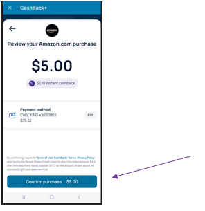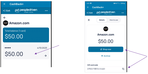 6. This gift card is now purchased and stored in your CashBack Wallet. Members can choose to use this immediately or store it in their wallet for later use.