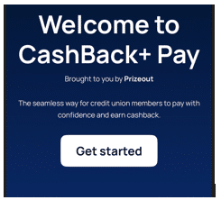 1. When you log into the MyPDCU mobile app, on your Dashboard, you will now see CashBack+ as a widget. This will give you a snapshot of your cashback balance. Click Get Started.