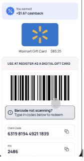 11. This will instantly generate an electronic gift card barcode that you can scan at checkout.